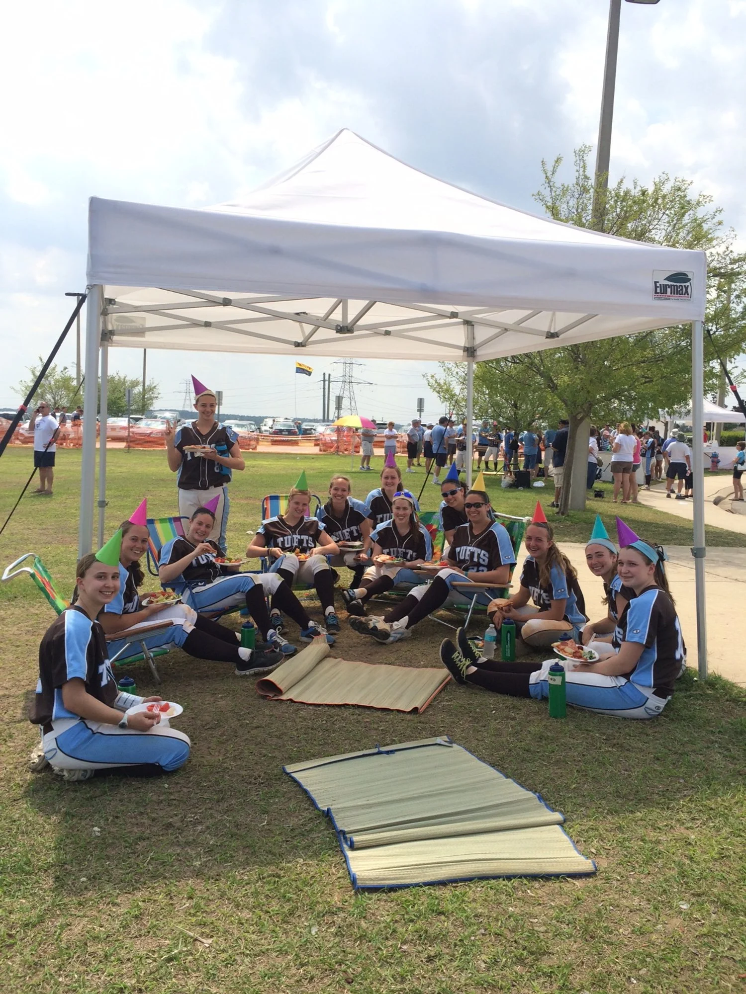 One (1) tent behind each home plate (tent, tables, and 2 chairs)